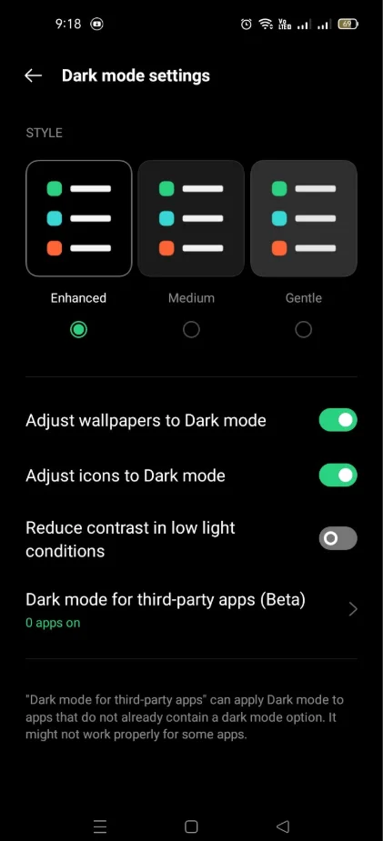• Dark Mode Intensity (Gentle, Medium, Enhanced)